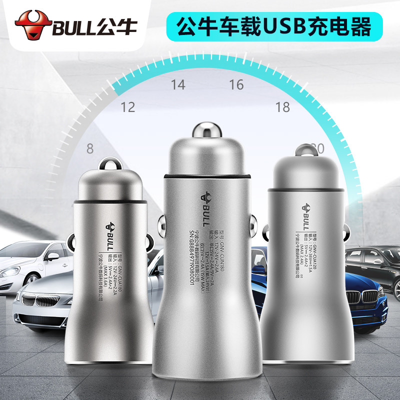 Bull On-board Charger Aluminum Alloy Housing One Tug 2 usb Charge 10% Two-point cigarette lighter cart Charge Quick Charge