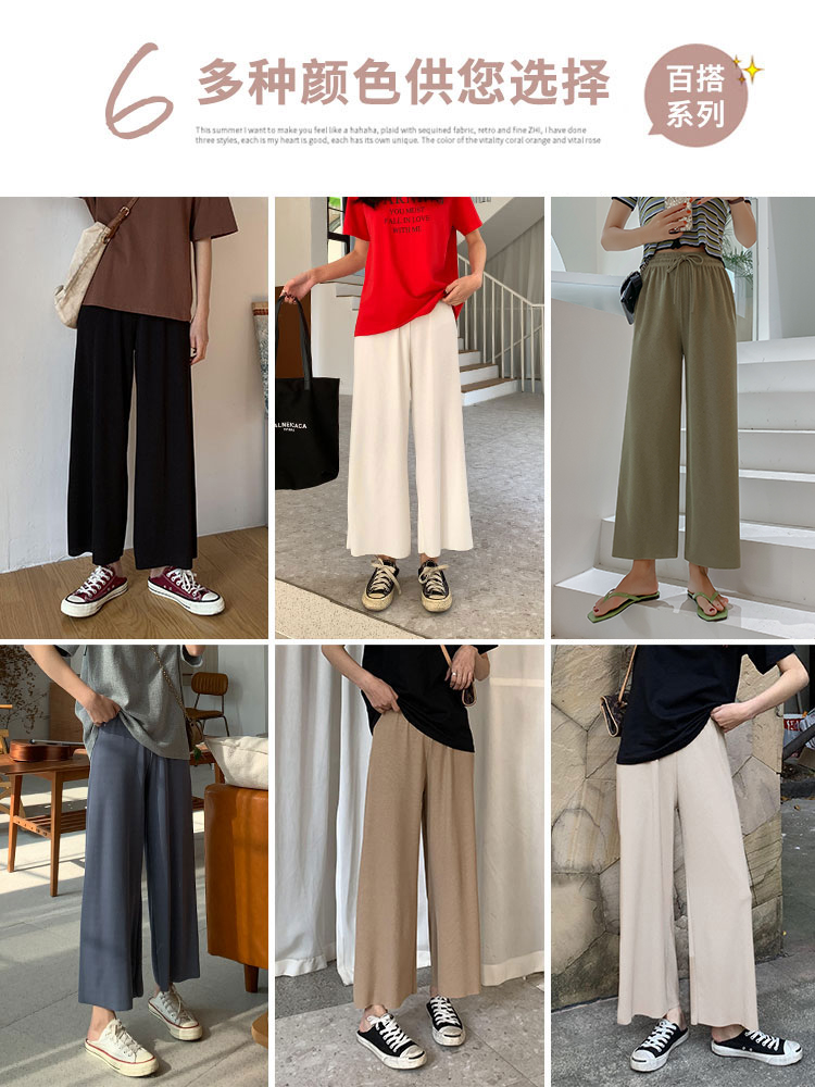 Ice Silk Broadlegged Pants Woman Summer Thin with high waist pituitary cold pants black Thin Slim 90% Straight Silo Little Subcasual Pants