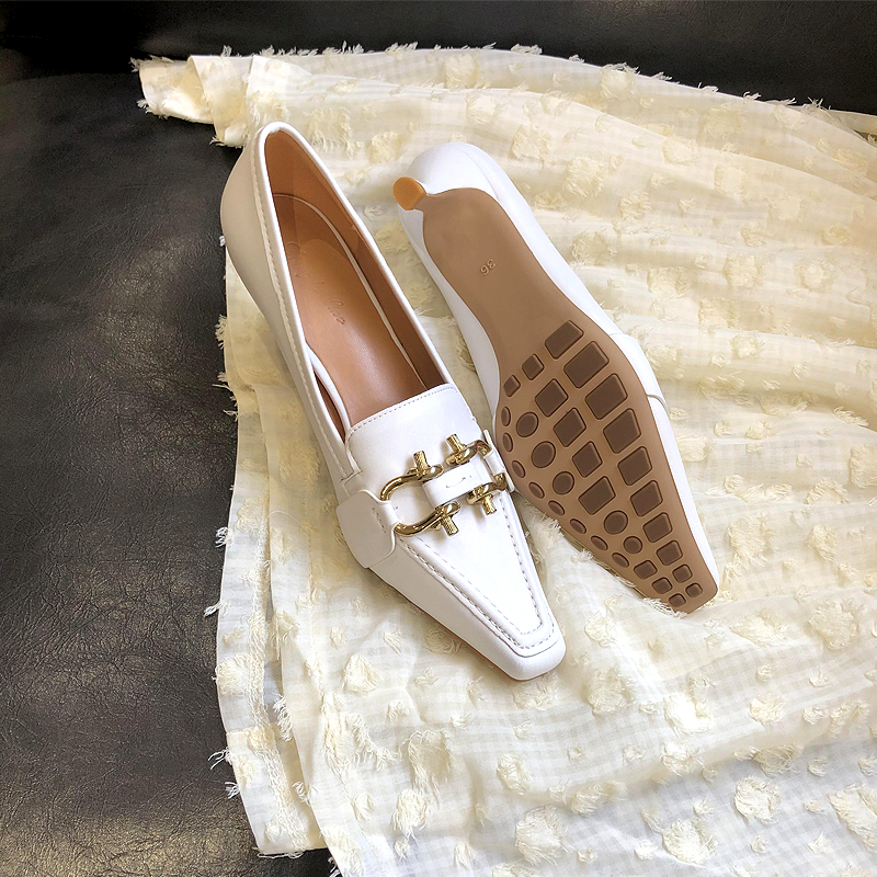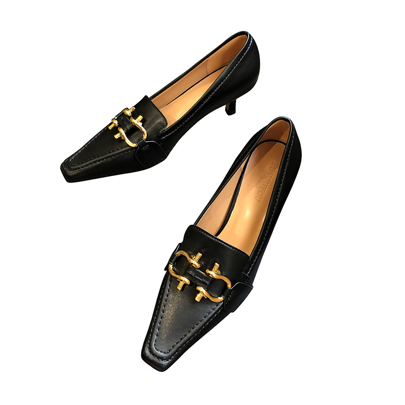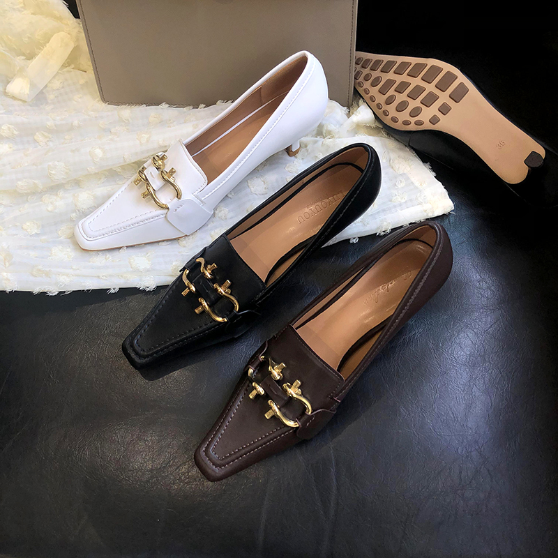 B black French high heels women's 2020 spring new square head thin heel metal buckle retro cat documentary shoes women's shoes v