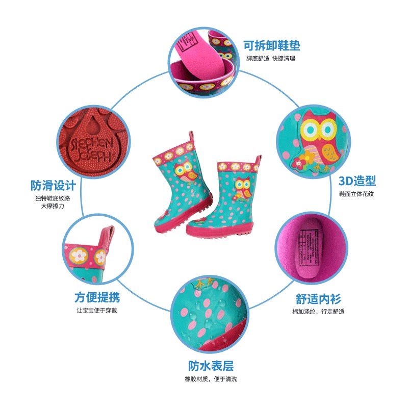 American StephenJoseph cartoon rain boots children's rain boots kindergarten students men and women non-slip mid-tube water shoes
