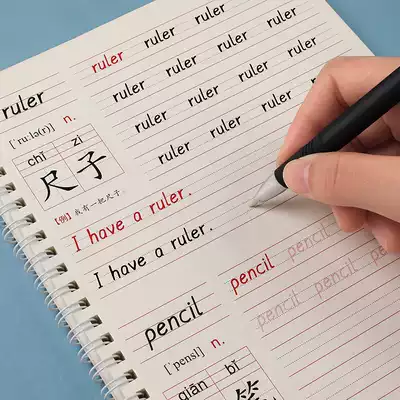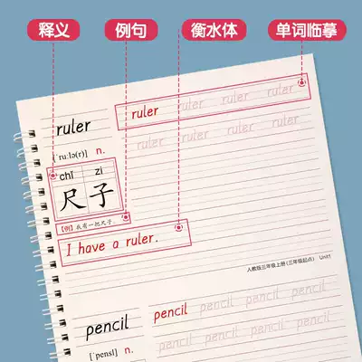 Third grade Fourth grade Hengshui body English copybook Upper book Lower book human education version Primary school students English handwriting font synchronous word practice post stickers Daily practice 3 Children's word practice artifact Practice writing English alphabet word tracing Red practice book