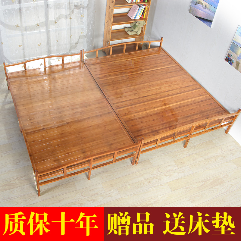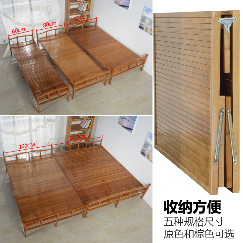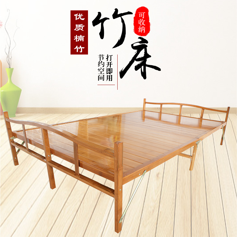 Bamboo bed Folding bed Single household 1 2 meters lunch break solid wood double hard board Economic rental simple activity bed