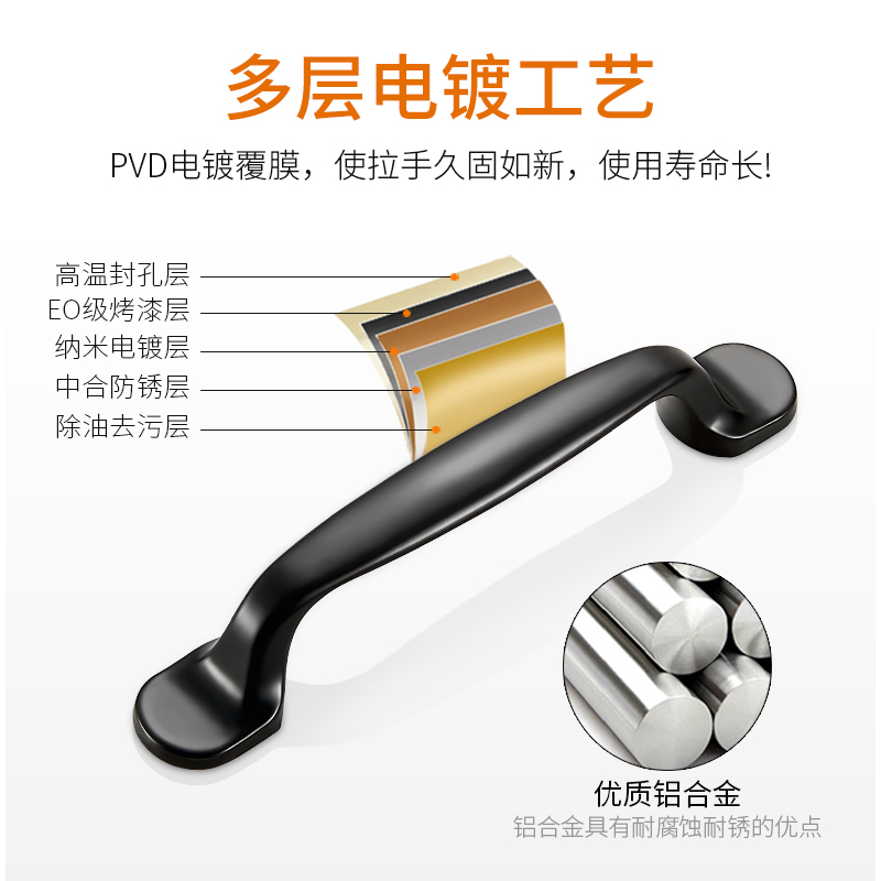 American black cabinet door handle European overall cabinet drawer handle Modern simple wardrobe handle Cabinet door handle