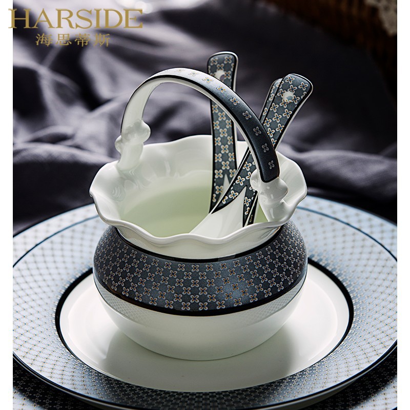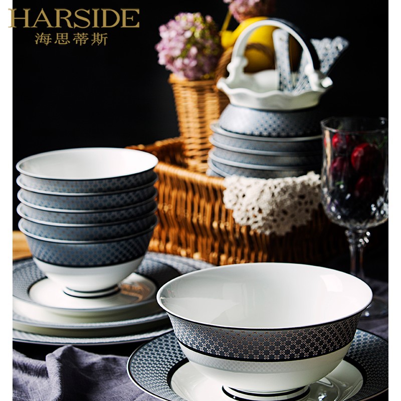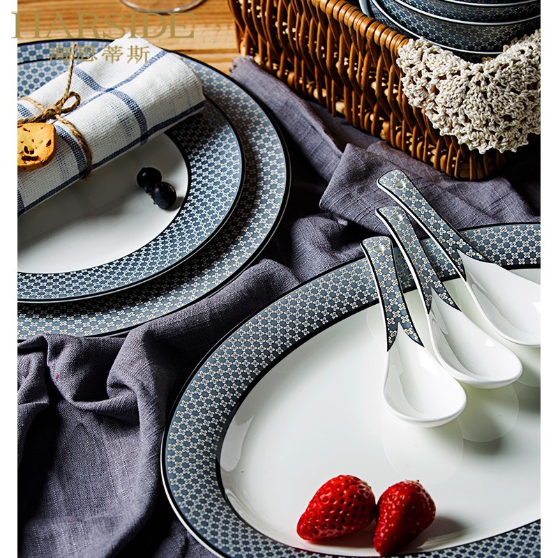 HARSIDE Cutlery Sets Home Han Style 56 Head Bowls Pan Bowls Chopsticks Upscale Bone Porcelain Tableware Suit