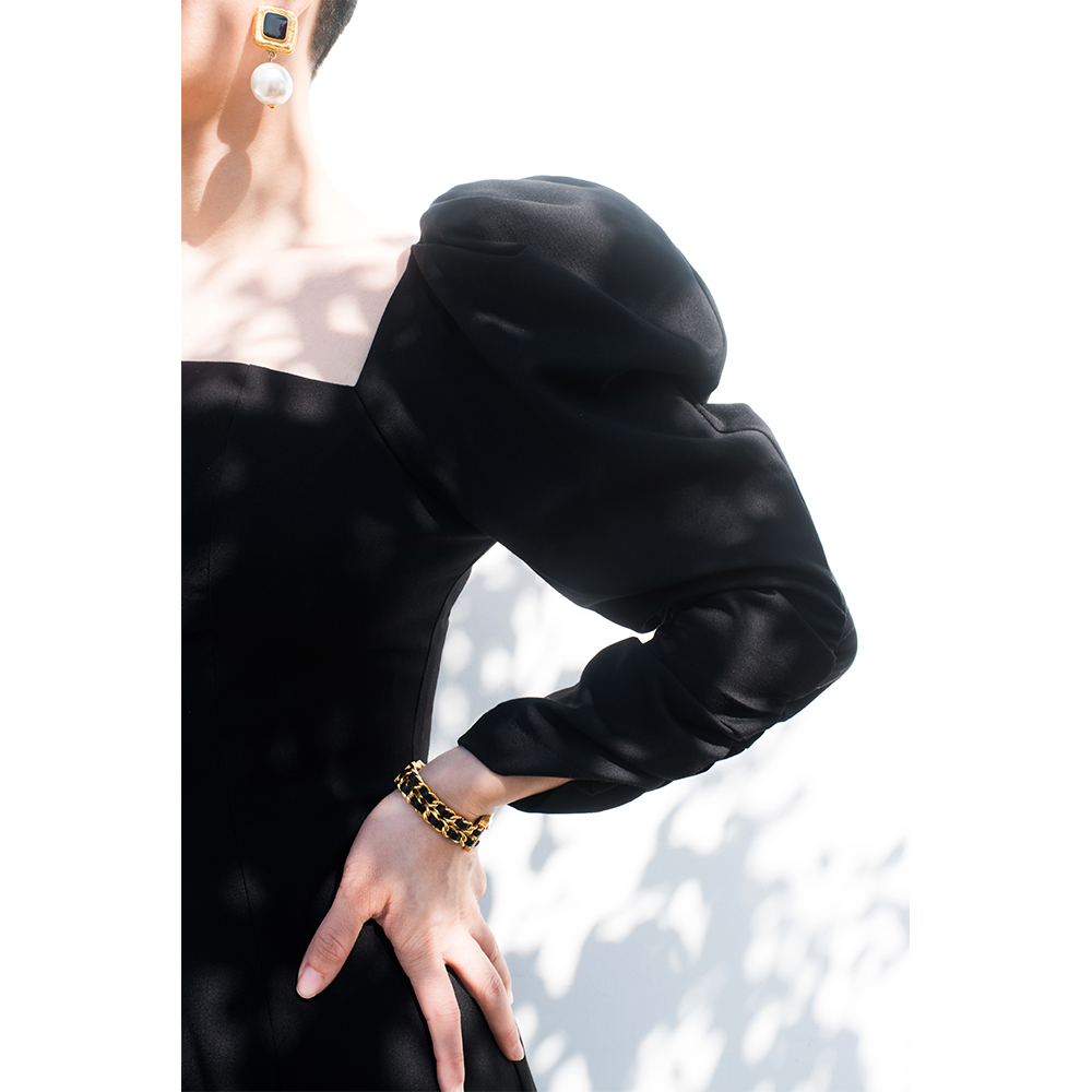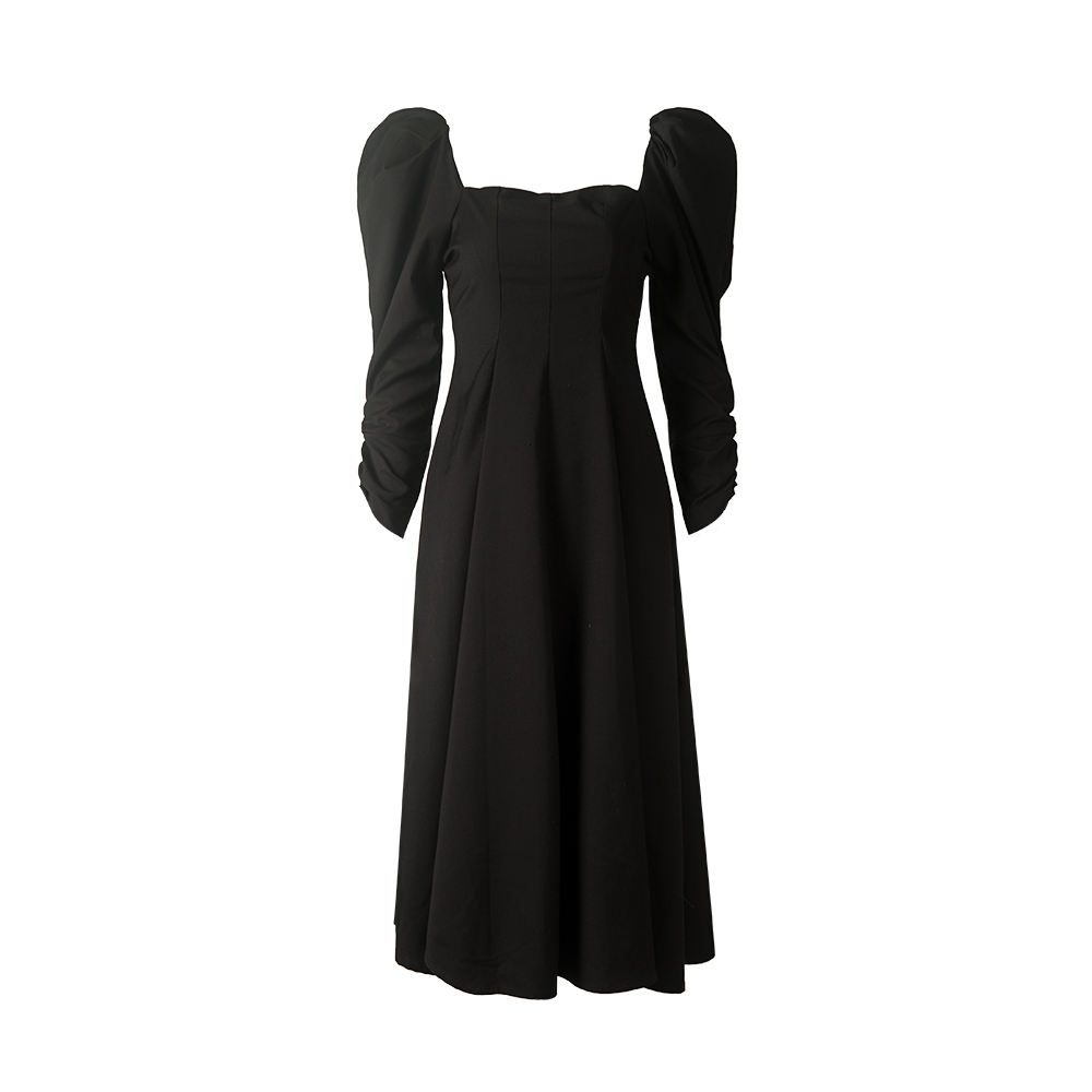Painted Moon Black Sheep Leg Cuff small black dress Herben dress Long skirt French style retro closedown waistcoat Bubble Sleeve Ocean Dress