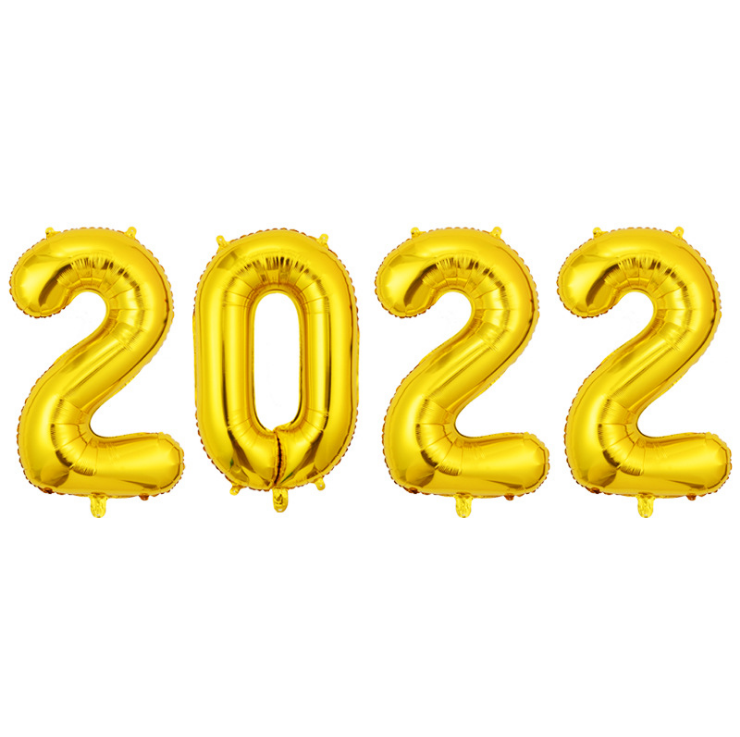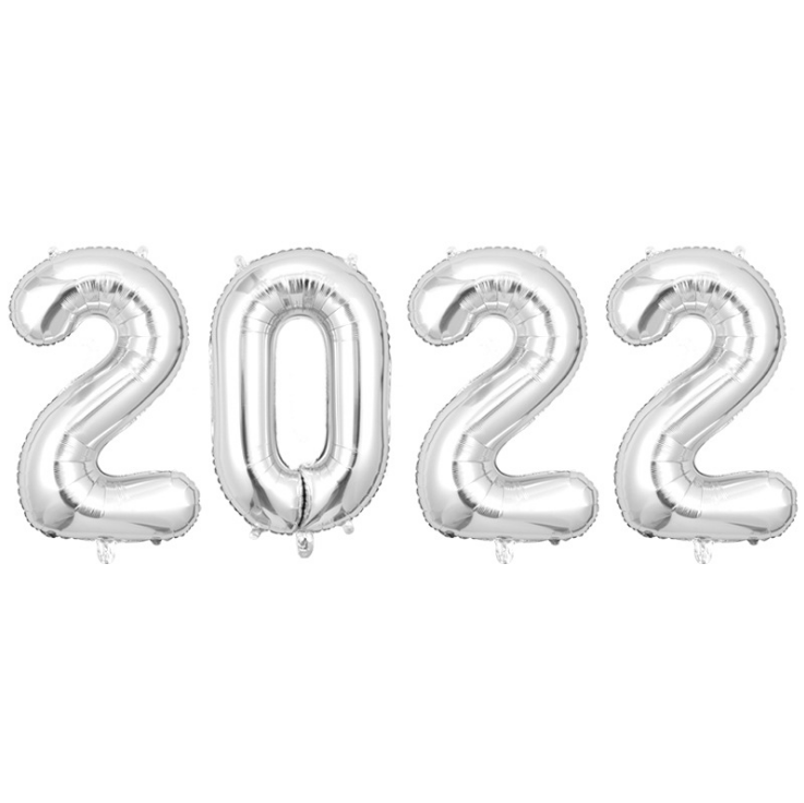 New Year Creative Digital Balloon Golden Silver party decorated with 32-inch 2022 aluminium film balloons
