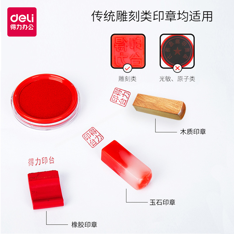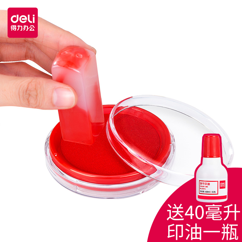 Deli printing clay red printing desk large printing clay box fast drying sponge core round printing oil Indonesia handprint fingerprint small black atomic seal oil blue square financial office supplies stationery