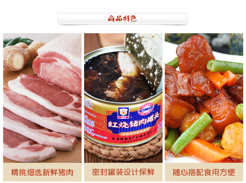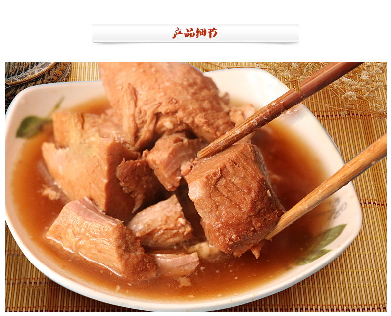 Pork water brewing soy sauce white sugar yellow wine edible salt Vegetable oil spices monosodium glutamate, etc. subject to the actual information of the product packaging