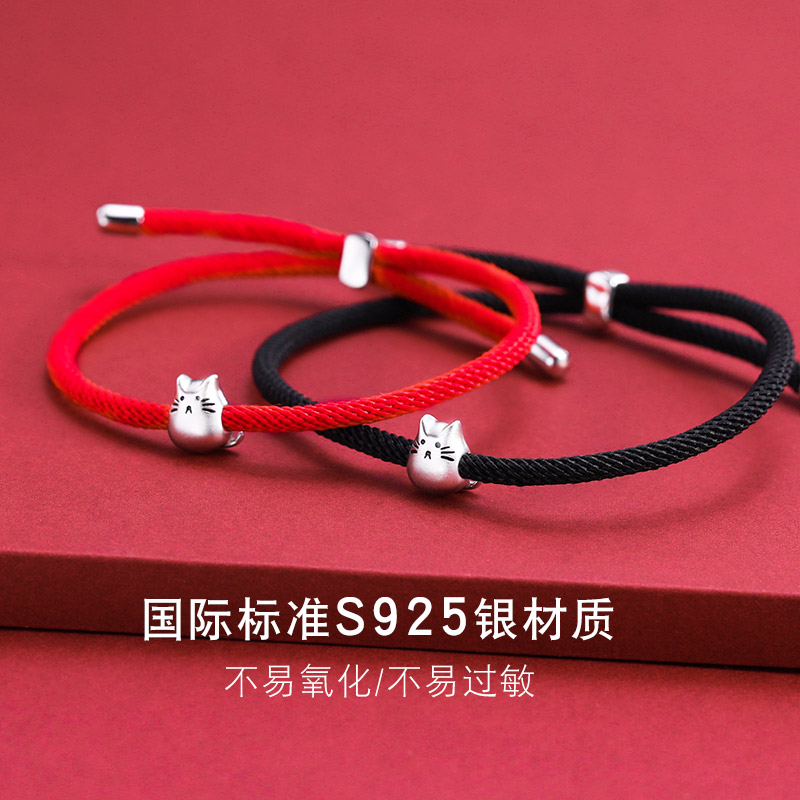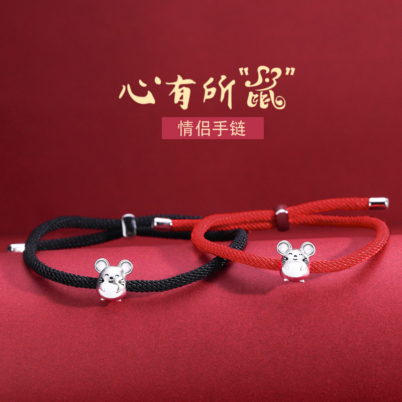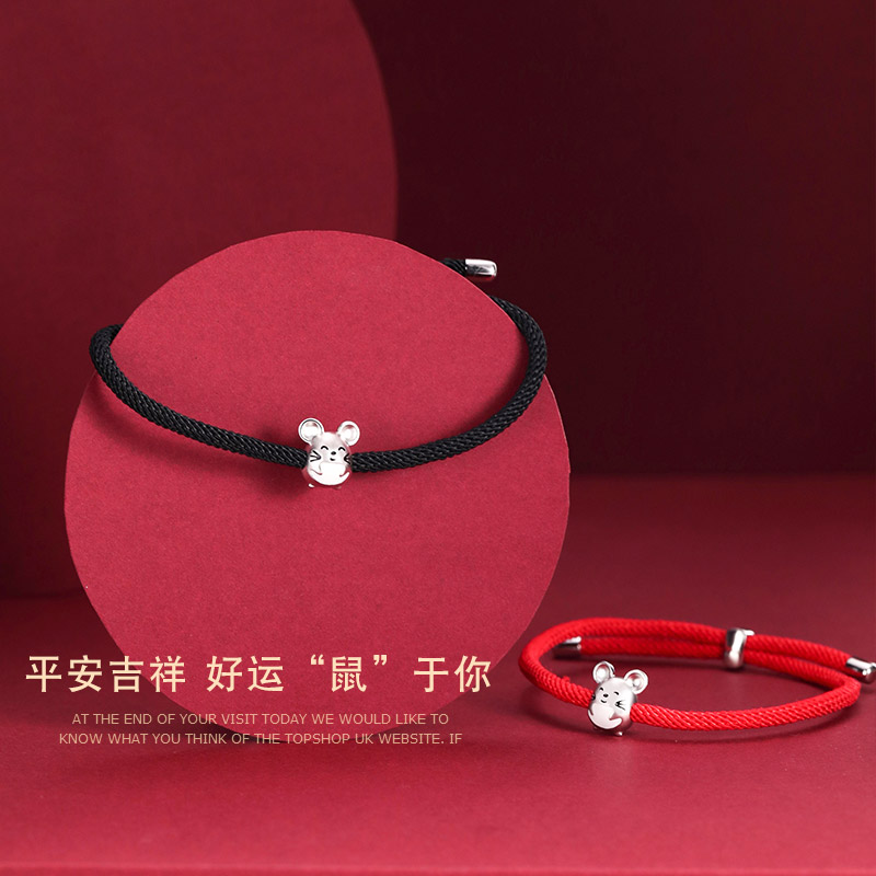 Year of the Rat year of Life bracelet female couple sterling silver pair of students red rope mouse Chinchilla adjustable original design