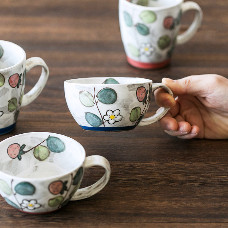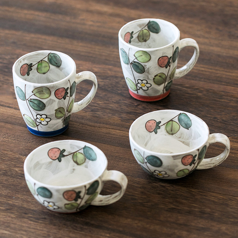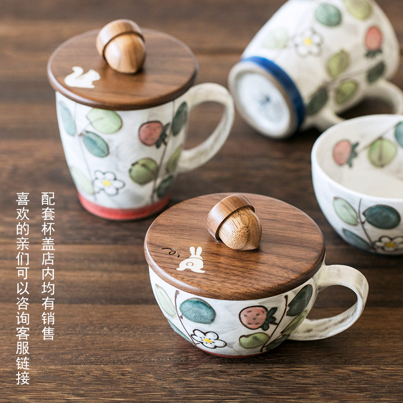 Japanese imported writer hand-painted ceramic strawberry cherry blossom mug milk cup breakfast cup coffee cup pair cup gift