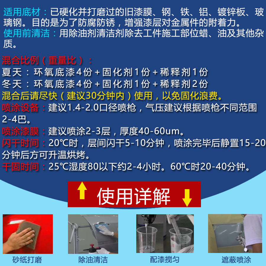 Automotive epoxy primer weatherproof anti-corrosion and anti-rust indoor and outdoor stainless steel iron metal protection closed gray white fast drying