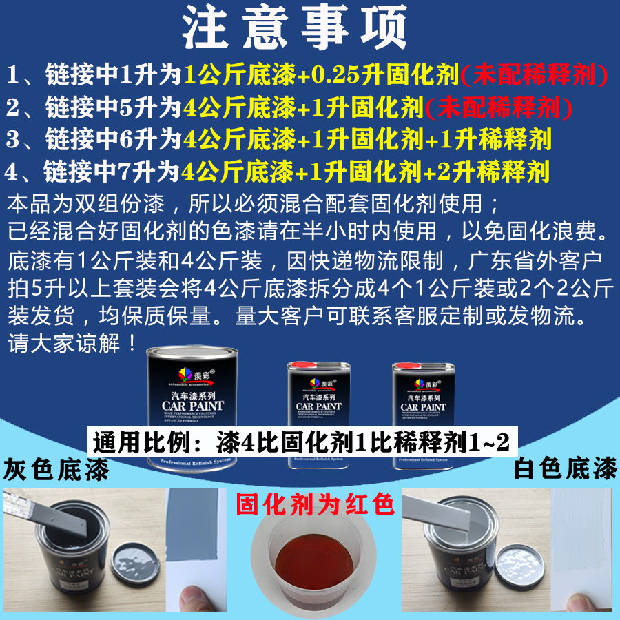 Epoxy White Primer 1kg + Dry Agent 0.25L (Set) Ring White Primer 1kg + Dry Agent 0.25L + Dilute Material 0.5L Epoxy White Primer 4kg + Dry Agent 1L (Set) Epoxy White Primer 4kg + Dry Agent 1L + Dilute Material 1L Epoxy White Primer 4kg + Dry Agent 1L + Dilute Material 2L Epoxy White Primer 20kg + Dry Agent 5L + Dilute Material 5L Epoxy Ash Primer 1kg + Dry Agent 0.25L (Set) Ring Ash Primer 1kg + Dry Agent 0.25L + Dilute Material 0. 5L Epoxy Ash Primer 4kg + Dry Agent 1L (Set) Epoxy Ash Primer 4kg + Dry Agent 1L + Dilute Material 1L Epoxy Grey Primer 4kg + Dry Agent 1L + Dilute Material 2L Epoxy Ash Primer 20kg + Dry Agent 5L + Dilute Material 5L Individual Epoxy White Primer 1kg (Single Product) Separate Epoxy White Primer 4kg (Single Product) Separate Epoxy White Primer 20kg (Single Product) Separate Epoxy Gray Primer 1kg (Single Product) Separate Epoxy Gray Primer 4kg (Single Product) Separate Epoxy Ash Primer 20kg (Single Product) Epoxy curing agent alone 0.25 liters (single product) Individual epoxy curing agent 1 liter (single product) Separate advanced diluent 0.5 liters alone advanced diluent 1 liter alone advanced diluent 2 liters alone advanced diluent 4 liters