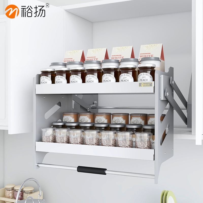 Yuyang custom wall cabinet lifting pull basket Kitchen top cabinet pull basket Pull down seasoning basket Overall cabinet lifting storage shelf