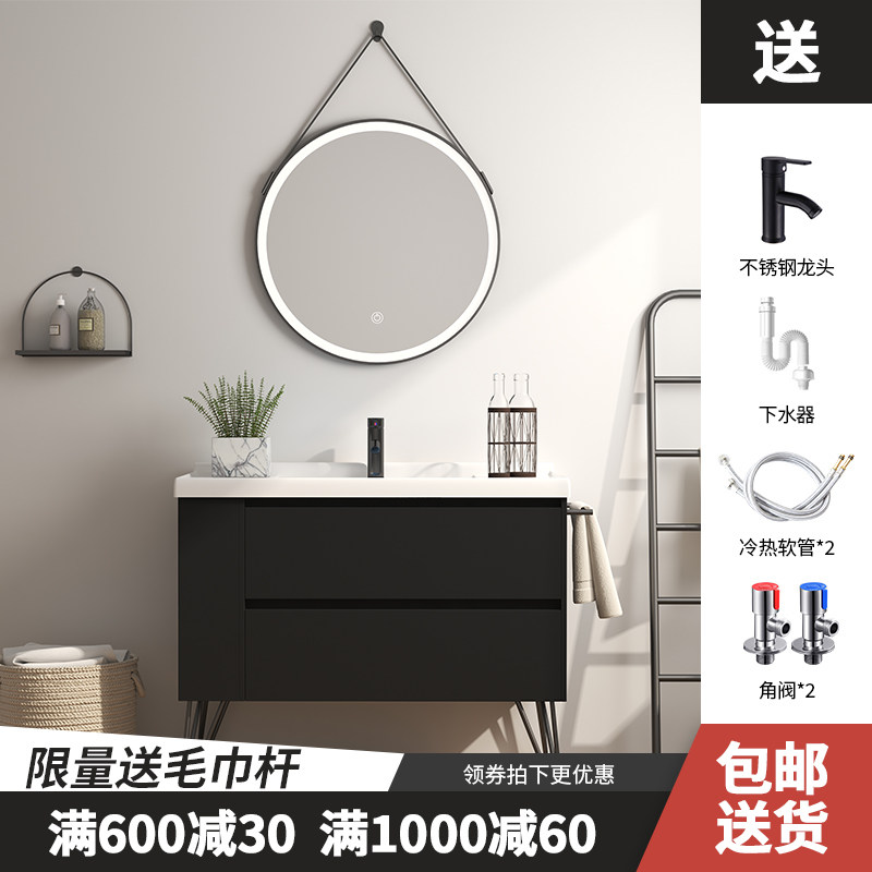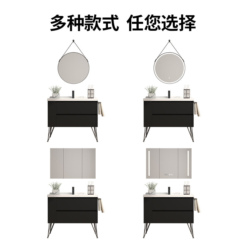Nordic bathroom cabinet floor-standing black bathroom smart round mirror toilet washstand washbasin washstand combination