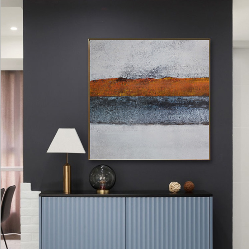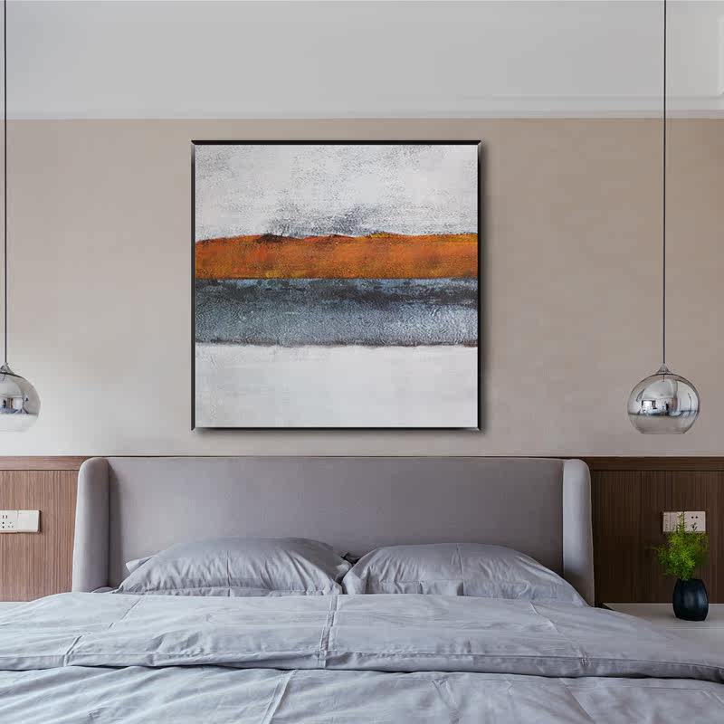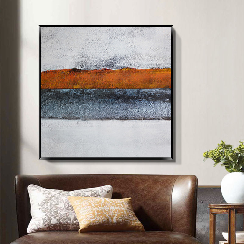 Hand painted orange oil painting minimalist modern abstract painting square Xuanguan painting Living room sofa Mural Dining Room Bedside Painting
