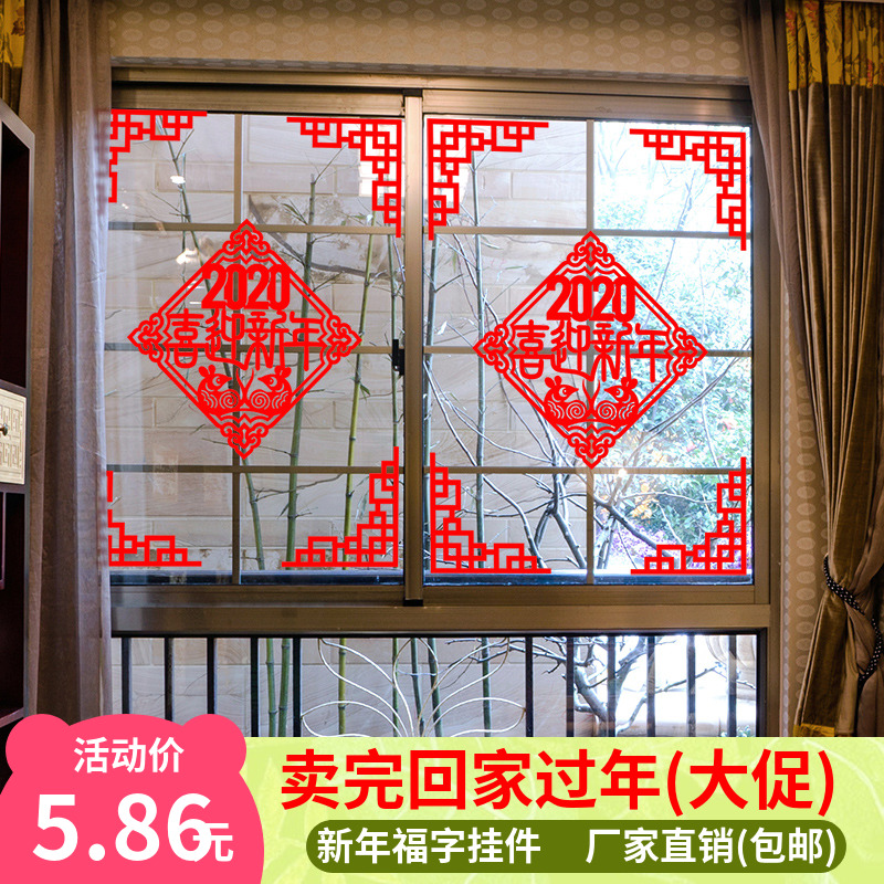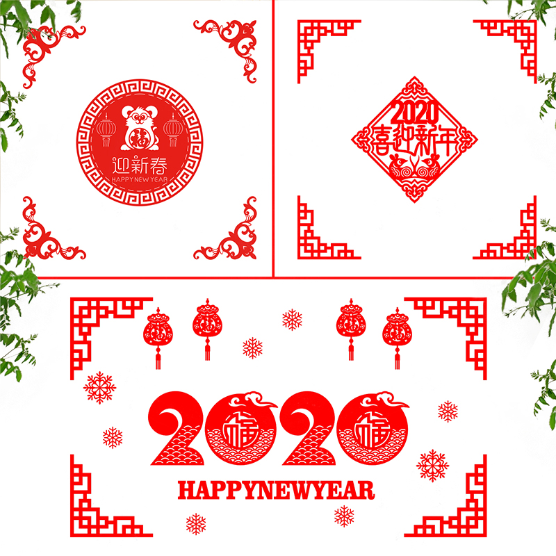 2020 New Year Spring Festival decoration holiday supplies living room New Year's Day door stickers window grilles wall stickers the Year of the Rat blessing package