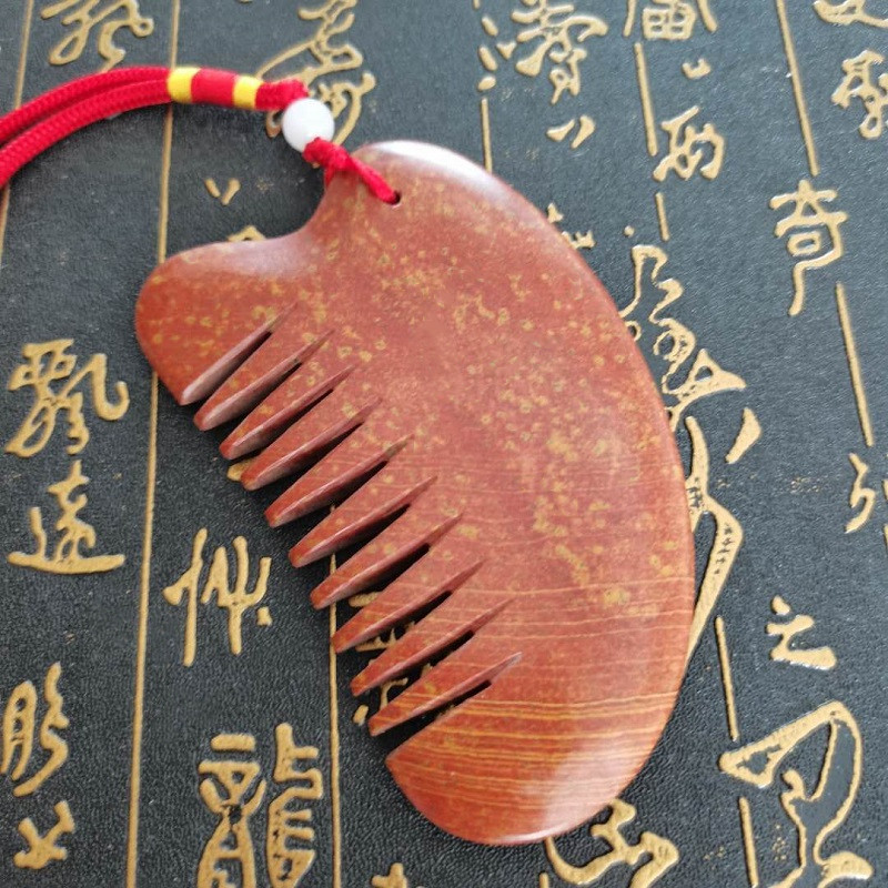 Natural Sibin Bianstone Scraping Board Red Bianstone Comb Massage Comb Hair Meridian Comb Whole Body Universal Tongrentang