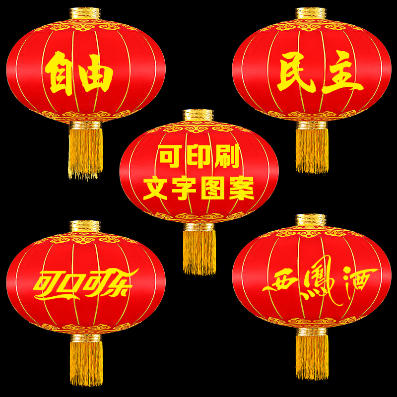 Outdoor Silk Satin Waterproof Lantern Large Red Lantern New Year Iron Mouth Lantern Can Print Advertising Festive Flats Balcony Decoration