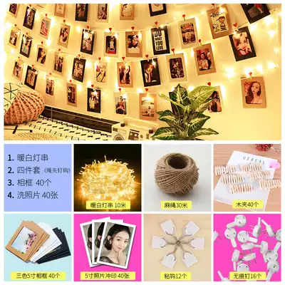 Net red Photo Wall room layout decorations hemp rope clip ins wind-free hole creative bedroom photo frame hanging wall
