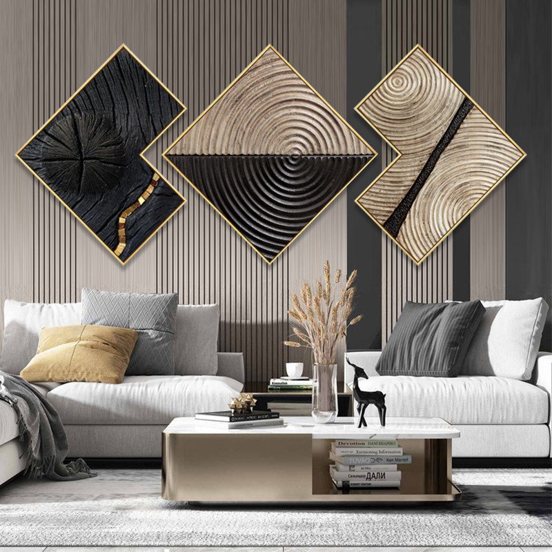 Light luxury living room decoration painting modern minimalist sofa background wall abstract Nordic water hanging painting atmospheric mural triptych - Taobao