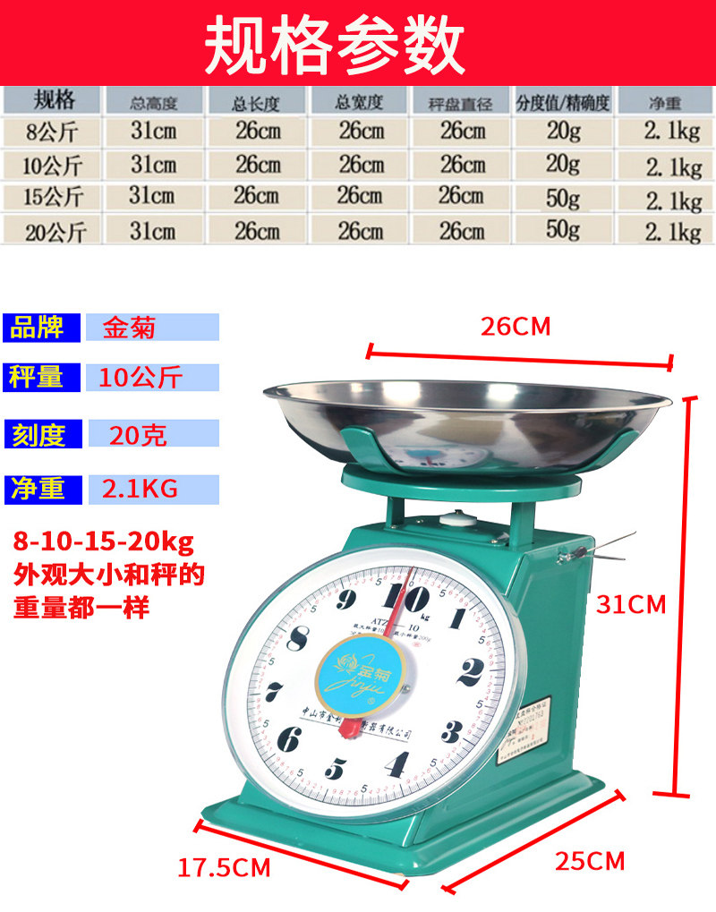 Plate weighing 10kg commercial small household food scale spring scale old 20-disc scale mechanical with disc