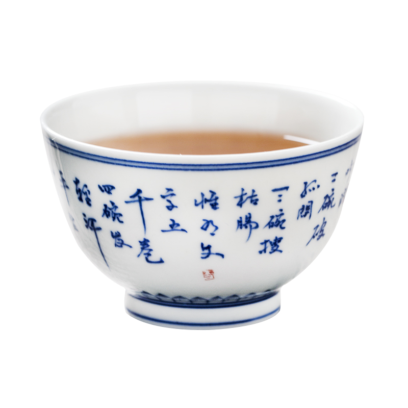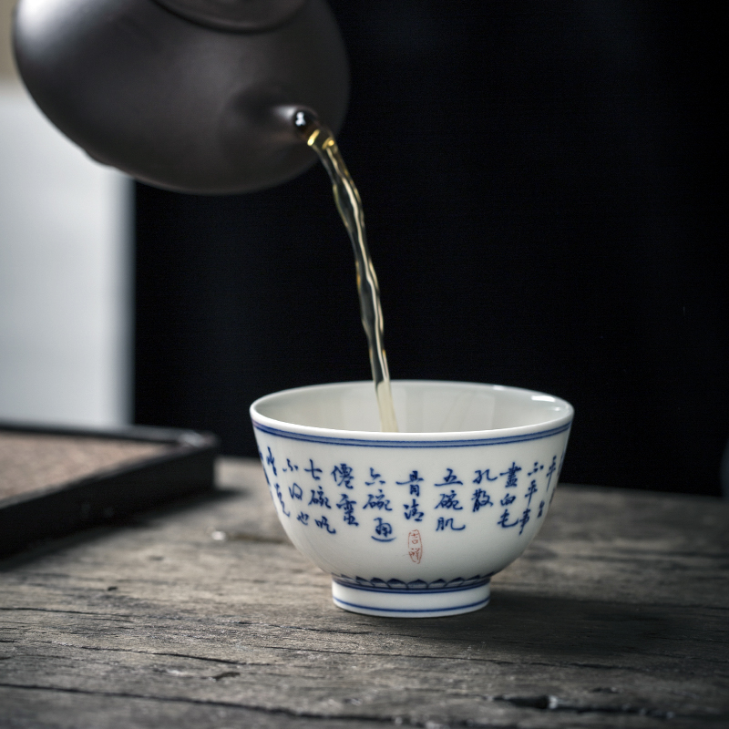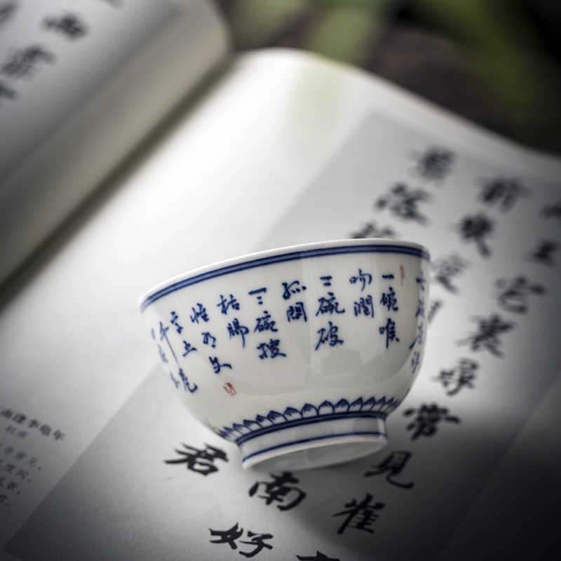 Hand painted turquoise owner's cup Jingdezhen Ceramic handmade tea tea Imitation Ancient Seven Bowls Tea Poetry Calligraphy Tea Cup Personal Single Cup