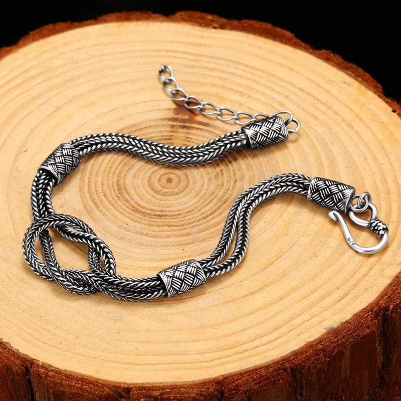 Rotai Old Silversmith 925 Silver Braiding Chopin Hand Refining Men's Tide Retro Personality Dinghy Artisanal Ornament Gift