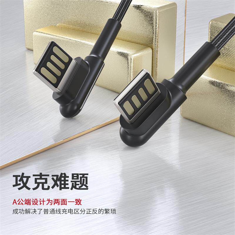 3A Double elbow soft LED lamp fast charging data line flip-blind insert suitable for Huawei TypeC short charging line
