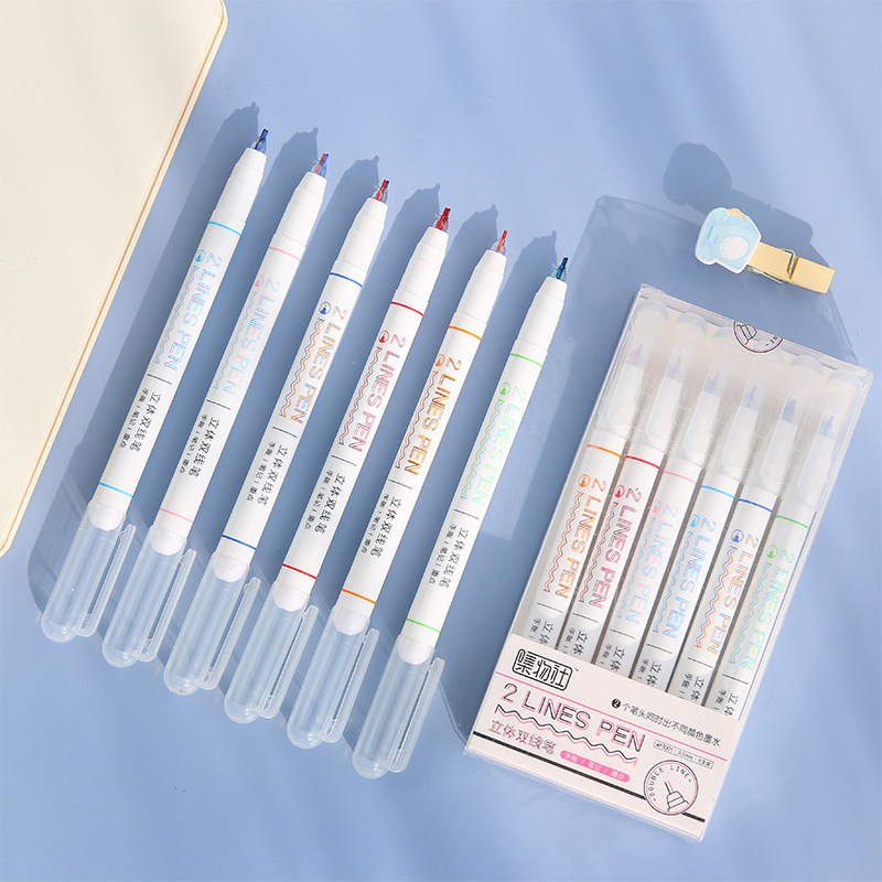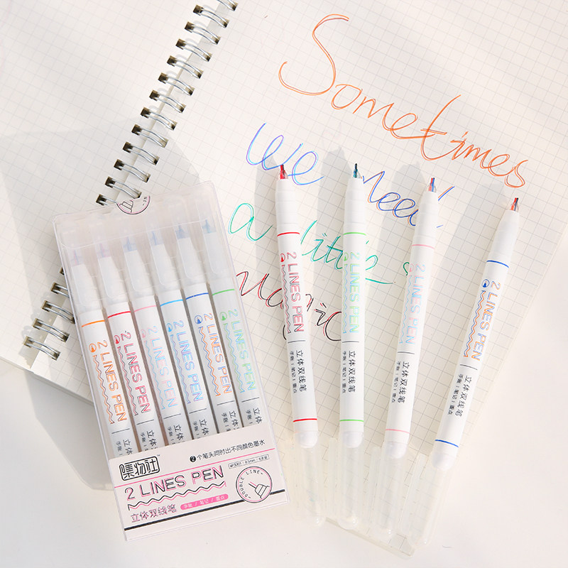 Double line pen cute girl double color label label stereo color handwriting pen stationery