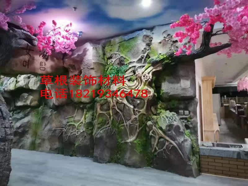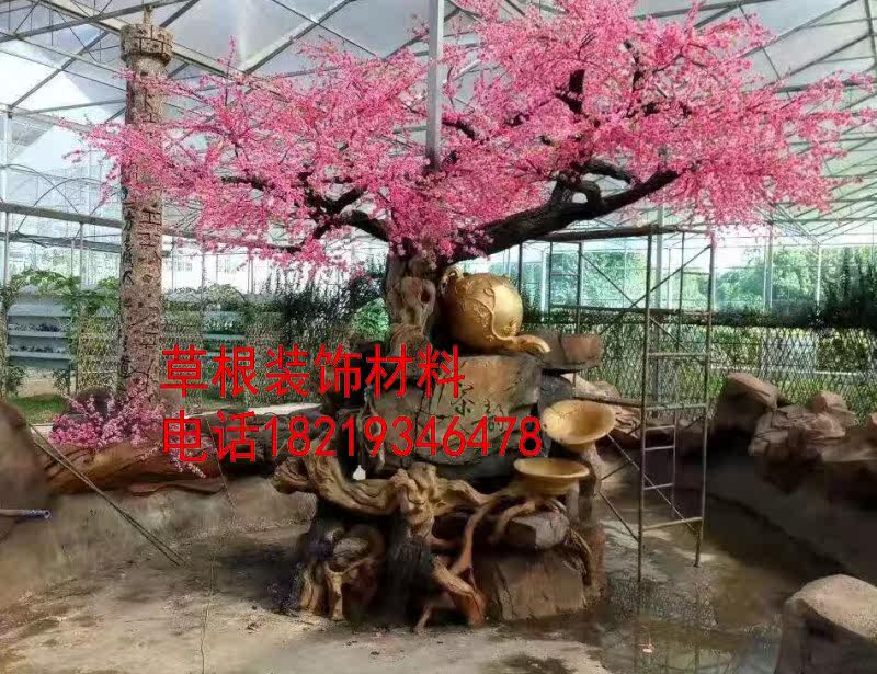 Customized cement large simulation tree manufacturer produces plasterboard cement dragon carving gate to decorate artificial mountain cave