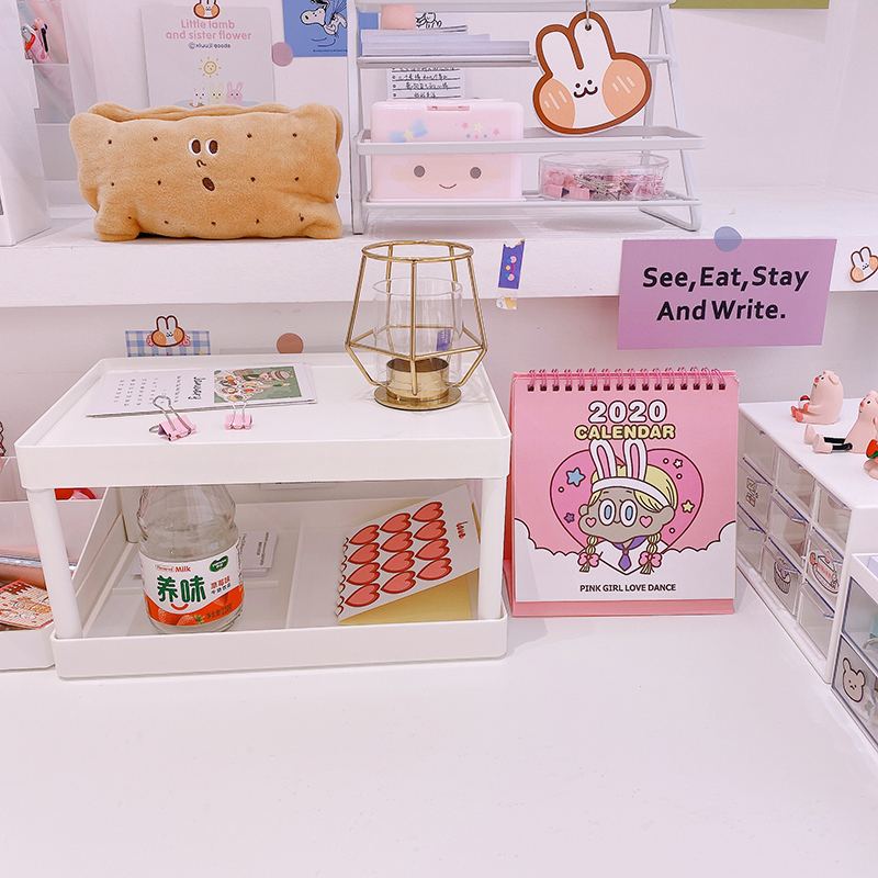 Eugene girl simple white desktop shelf large capacity desktop debris to collect double plate frame