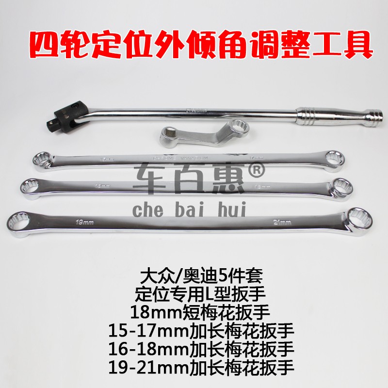 5 piece four-wheel positioning tool Taiwan production without packaging long positioning L-type adjustment rod (F rod) positioning short 18mm plum wrench positioning 15-17mm long plum wrench positioning 16-18m