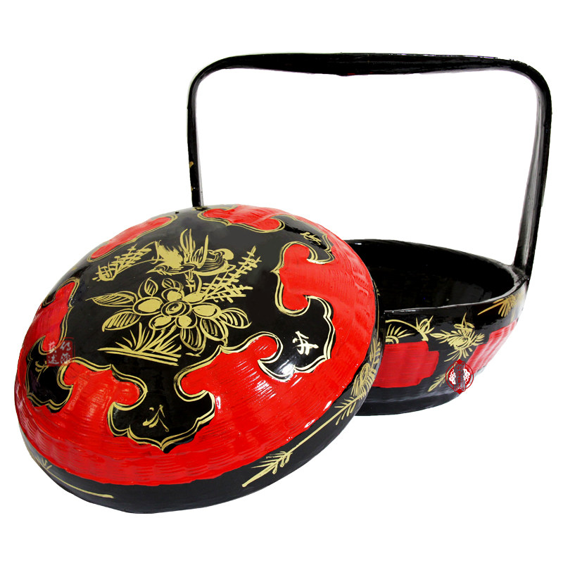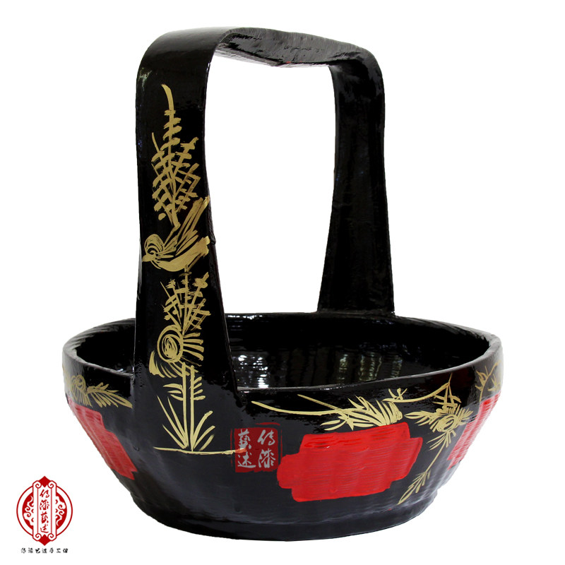 Lacquer art description spot Yongchun lacquer basket hand-painted large lacquer bamboo weaving wedding burning incense basket worship basket folk handmade lacquer