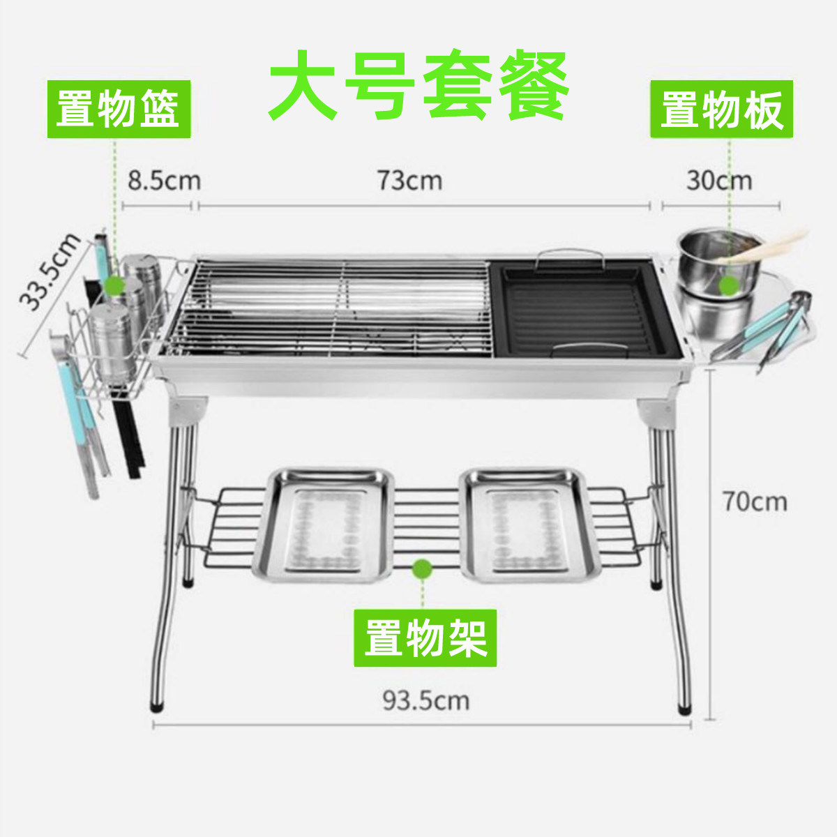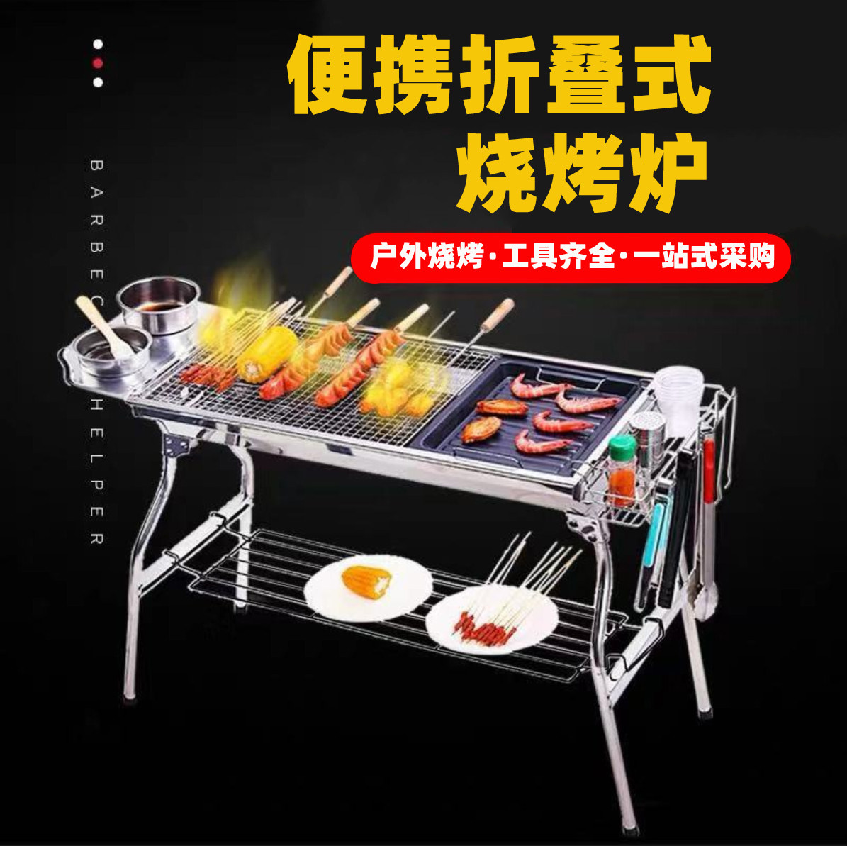 Stainless steel grill Portable outdoor folding barbecue stove Household charcoal barbecue field full set of tools BBQ