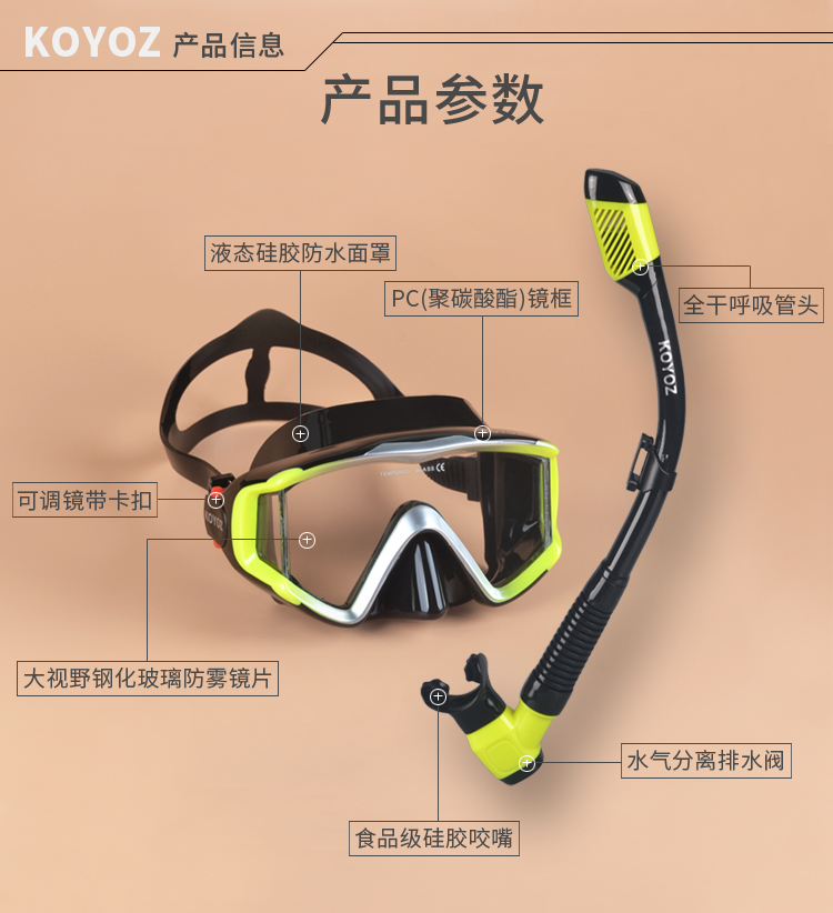 Snorkeling three treasures suit diving goggles full dry snorkel anti-fog myopia mask nose protection scuba swimming diving equipment