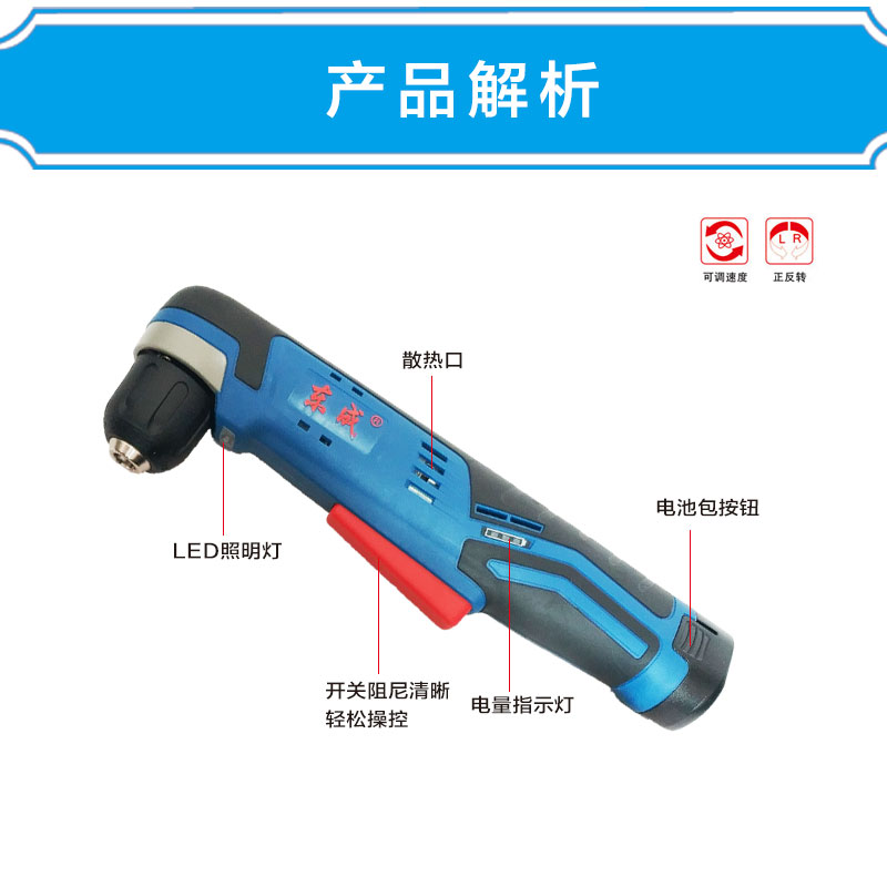 Dongcheng rechargeable angle electric drill 12V electric drill right angle drill 90 degree angle elbow electric drill DCJZ14-10E type