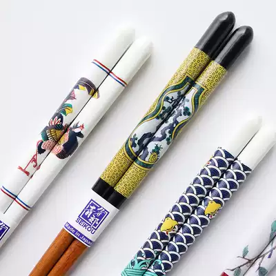 Japan imported Jiugu Yaki natural wooden chopsticks multi-color family with a set of Japanese chopsticks