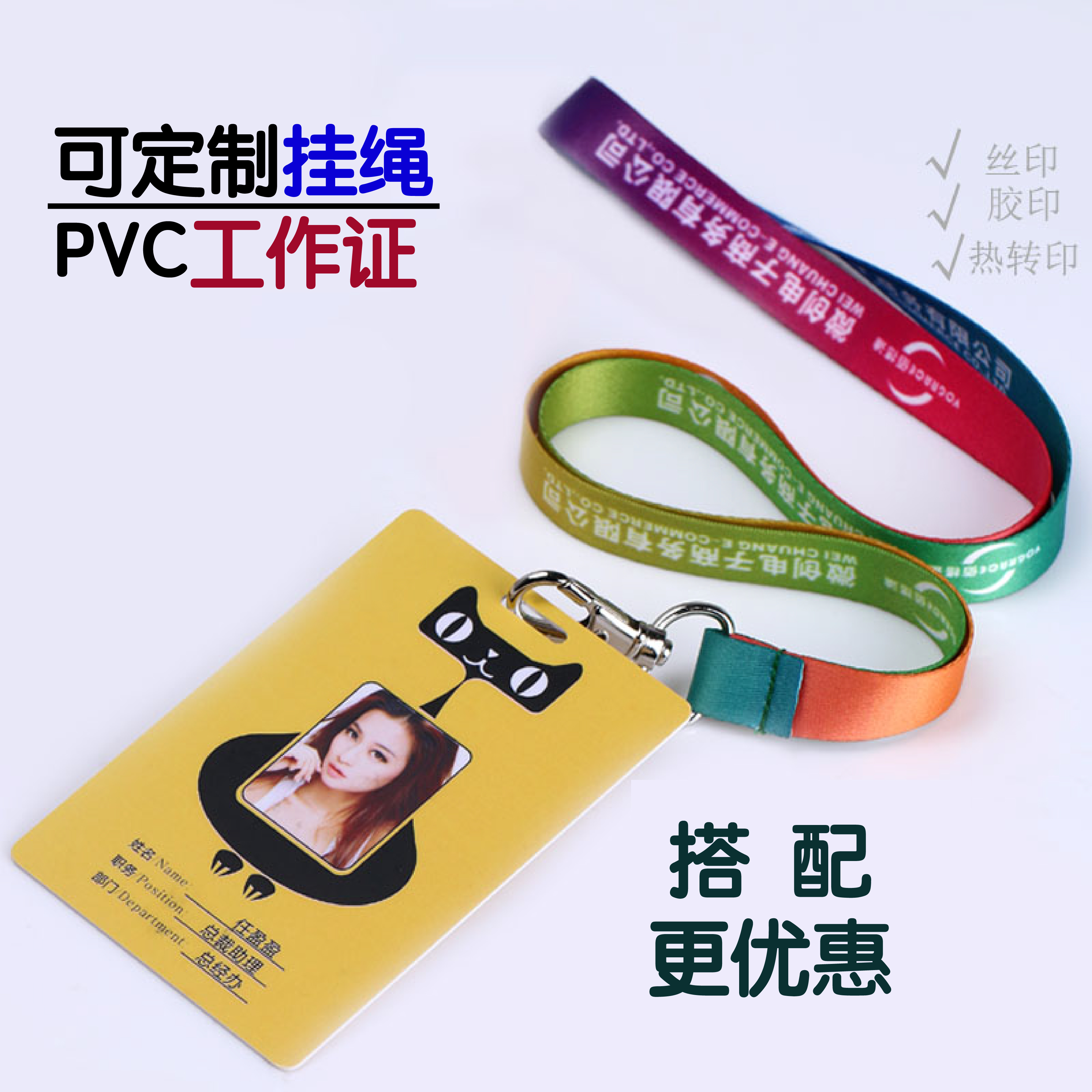 Work card hanging rope Custom logo Chest Card Sling Printed Word Document Cover Shell Factory Card Exhibi to show guest card student