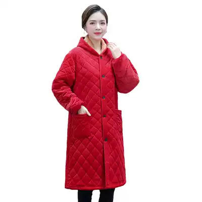 Retro National style padded velvet jacket women's winter long version warm hooded cotton coat coat apron overalls