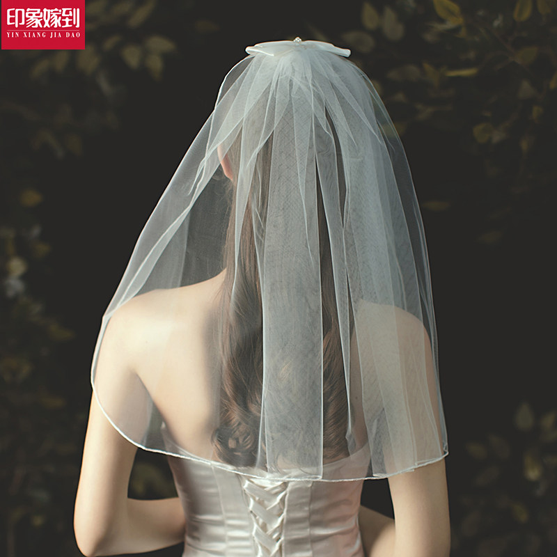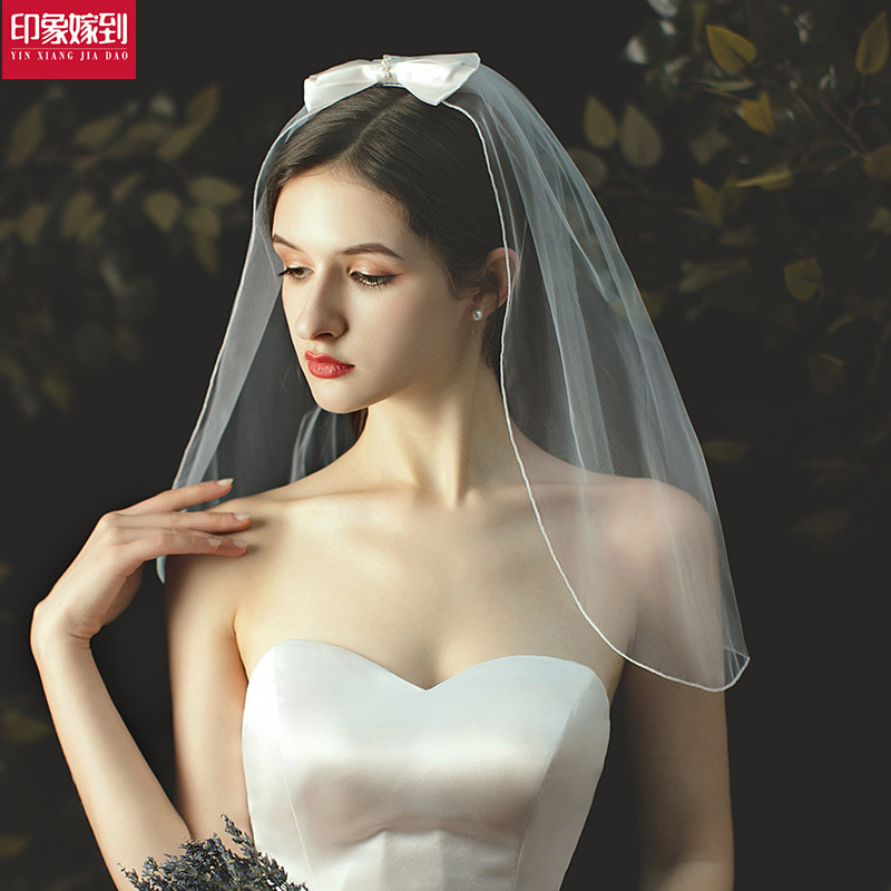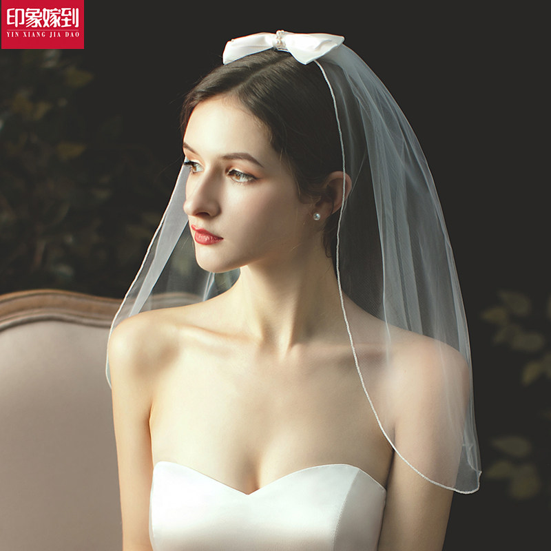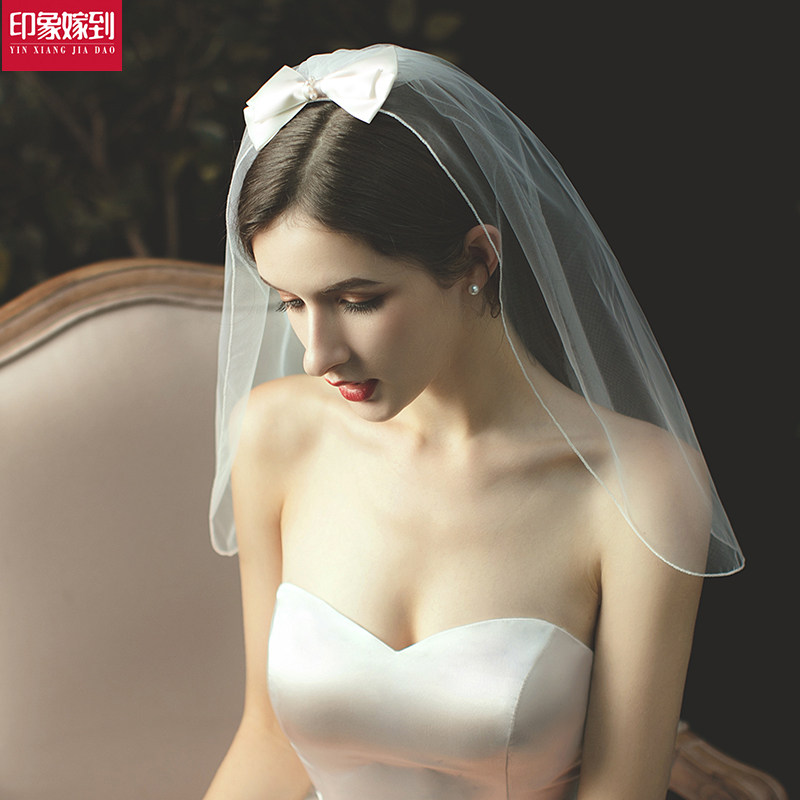 Bridal veil bow short sweet wedding dress headwear travel photography small fresh short hair bridal wedding accessories