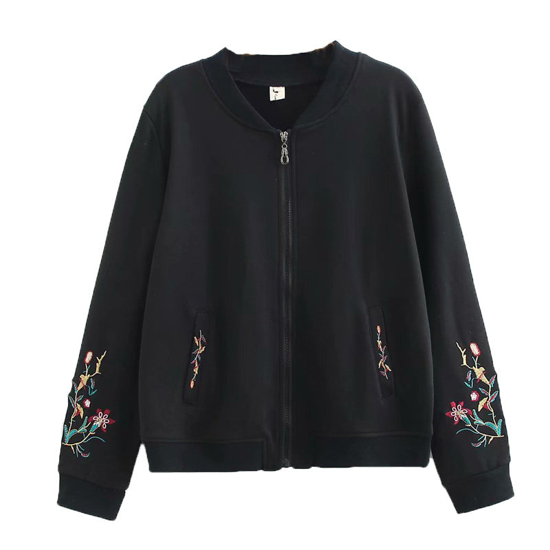 Spring jacket middle-aged mother's top fashion cardigan embroidered flower sweater fat mm slim middle-aged and elderly coat