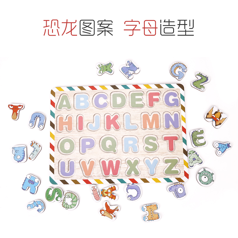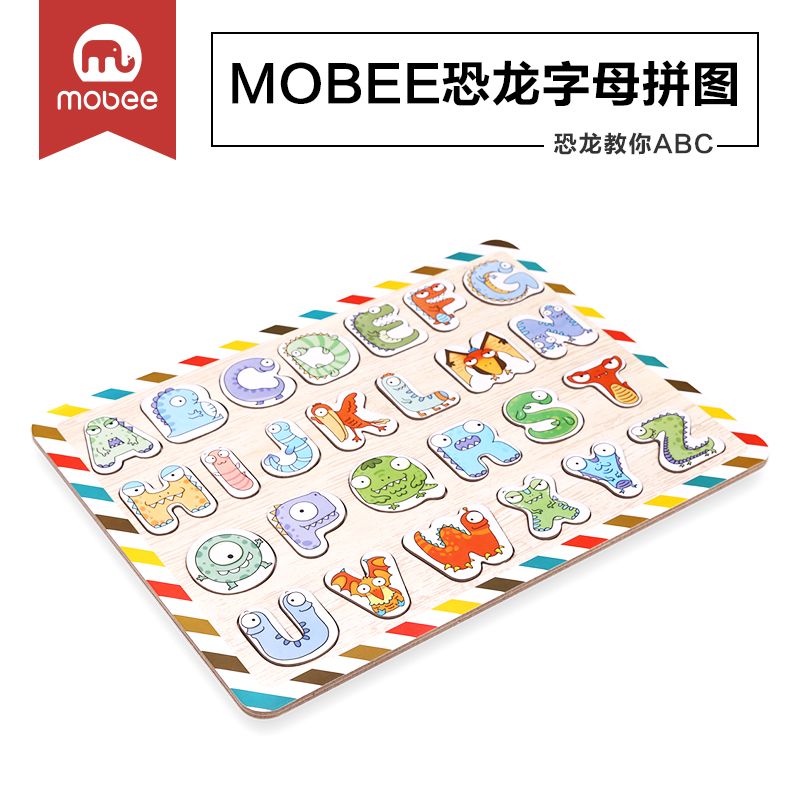 mobee mobbe children's dinosaur alphabet jigsaw puzzle male baby girl building blocks 2-3 years old children early teaching puzzle toy