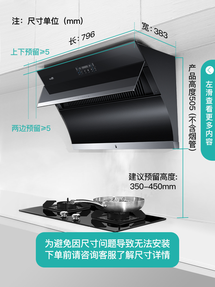 Huadi range hood i11134 side suction range hood official flagship household suction kitchen automatic cleaning