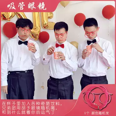 Game props Super long lazy beard Glasses eyes Straw Drinking water Funny Marriage drinking drink artifact Transparent
