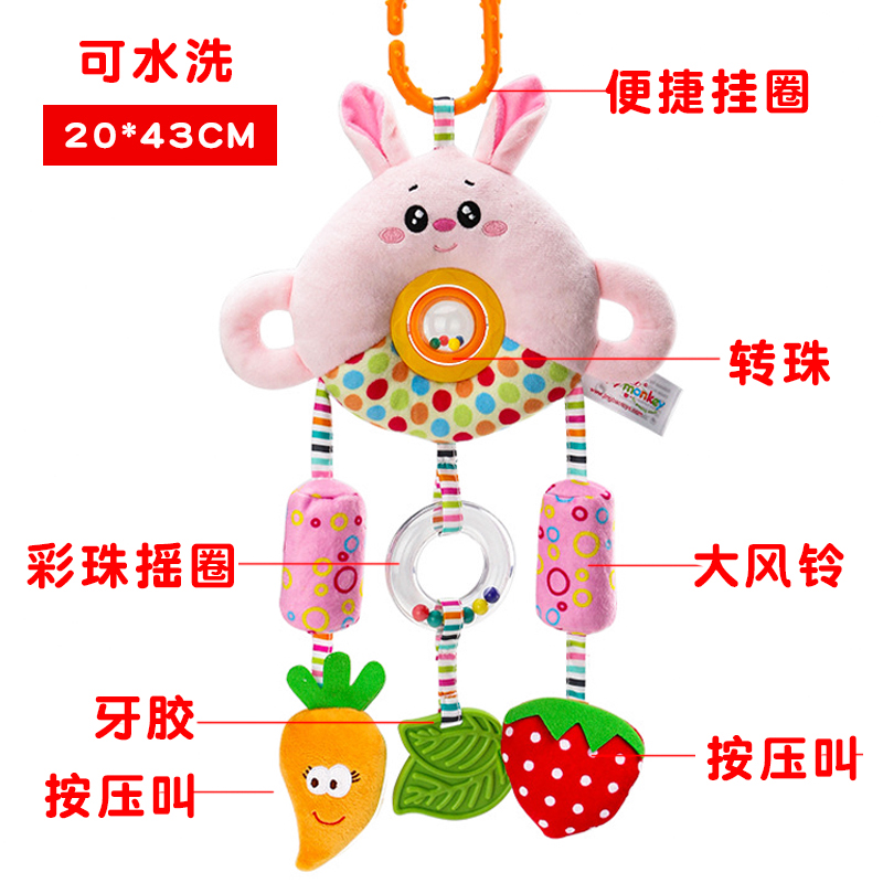 Newborn Baby Bites Toy Headboard Music Bells Bed Hang Baby Stroller Hanging Bell Puzzle 0-1 Year Old On-board Appeasement Toy