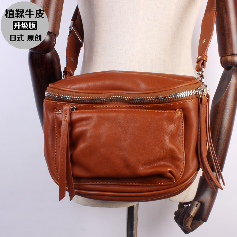 First layer cowhide messenger bag female 2022 new leather saddle bag Japanese casual chest bag small bag soft leather shoulder bag