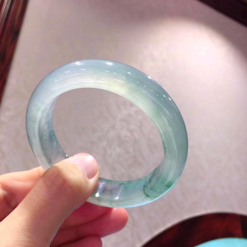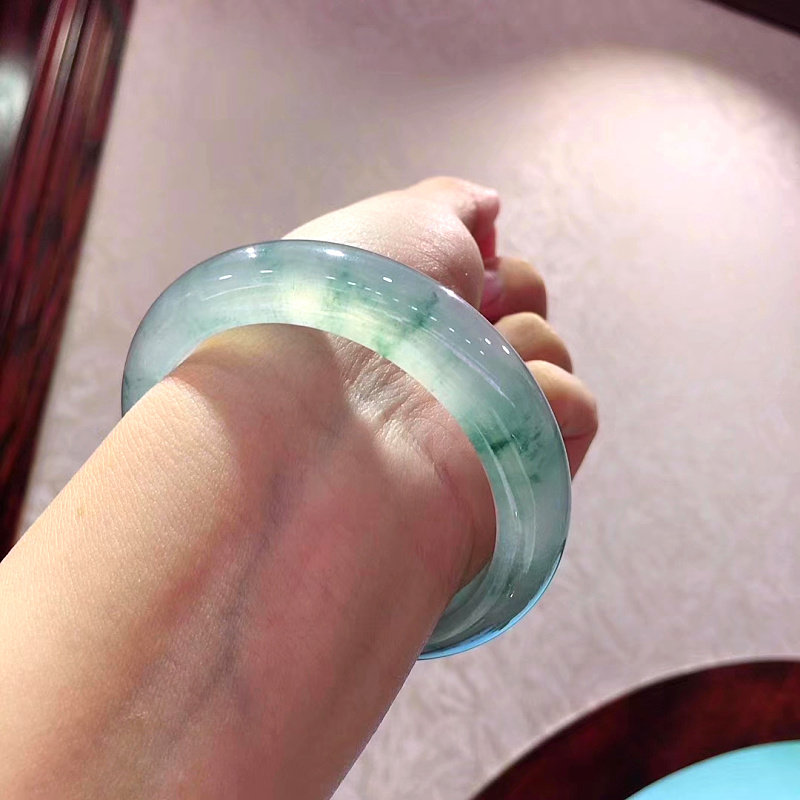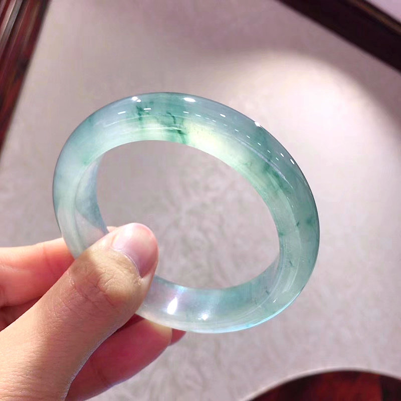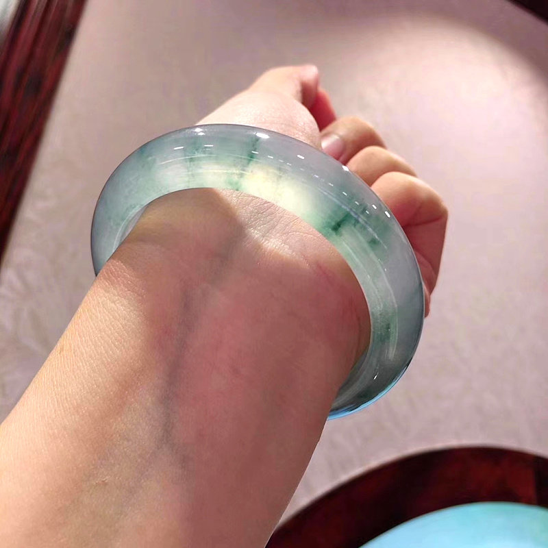 Ice kind of hydrating floating blue flower jade bracelet round strip natural Burmese clear water round strip jade bracelet a cargo noble concubine jade bracelet