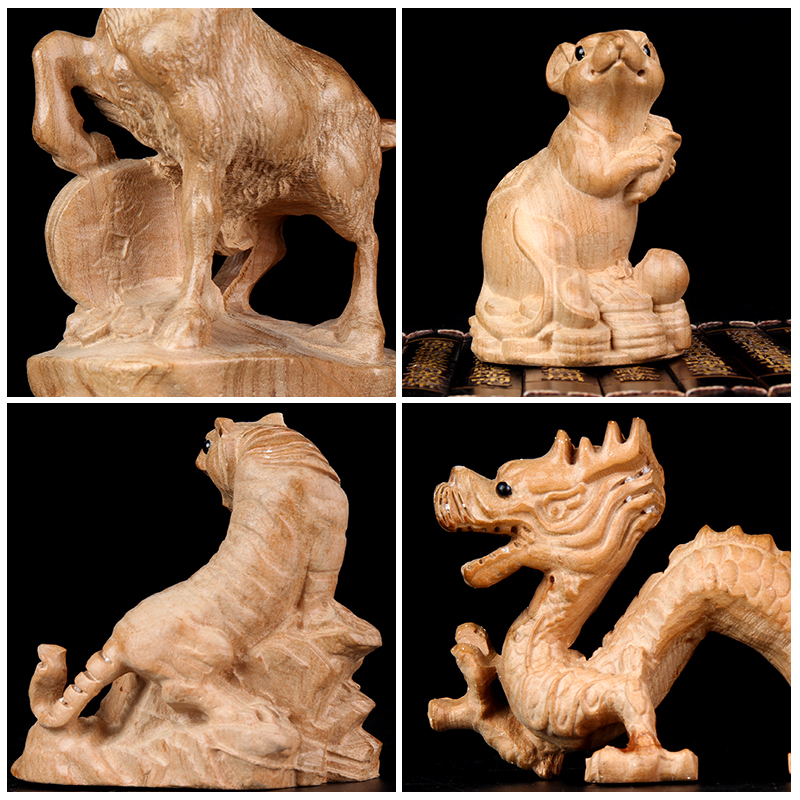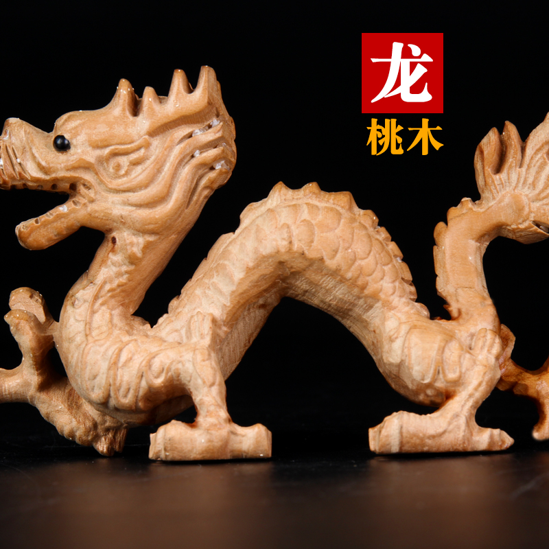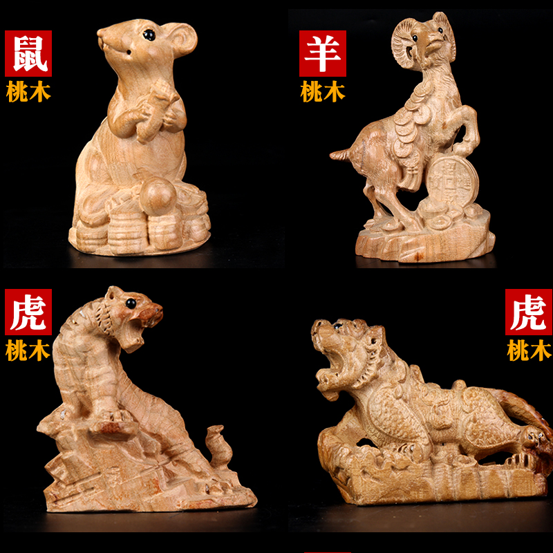 Peach wood zodiac handle pieces Wood carving crafts Wood mouse sheep tiger dragon decoration Home decoration Peach wood handle play
