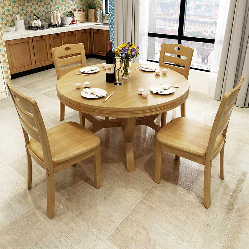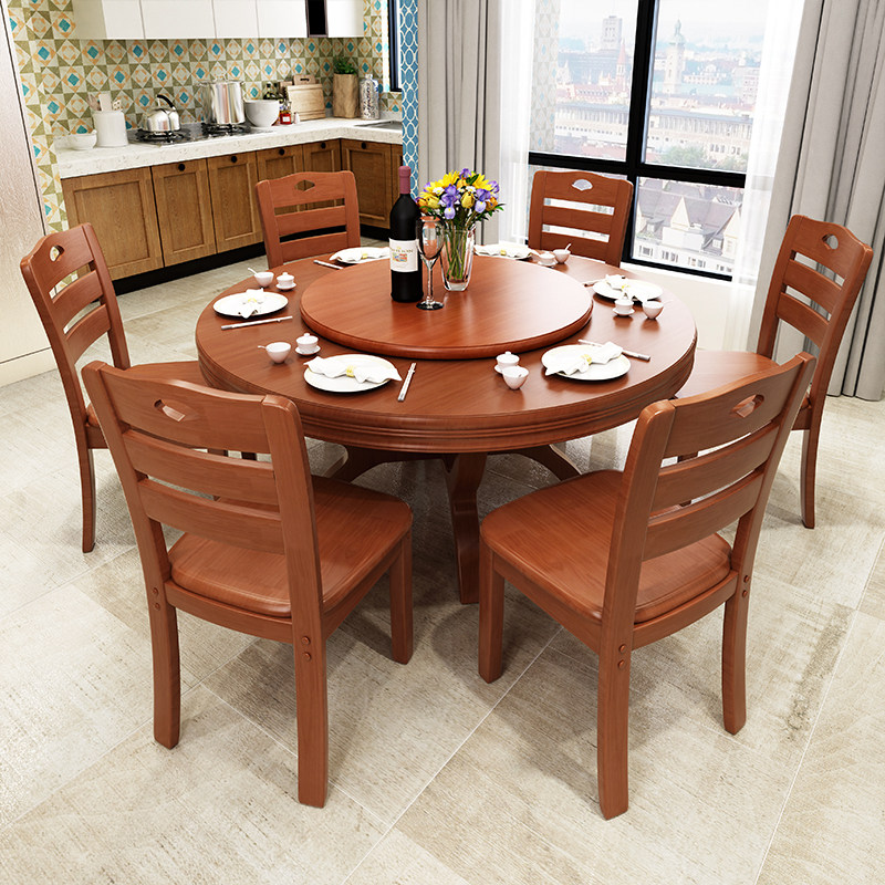 Solid wood dining table and chair combination Chinese round dining table family 10 people dining table hotel restaurant oak large round table