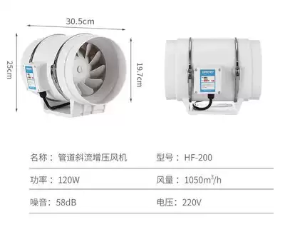 4 inch 6 inch round pipe fan strong formaldehyde removal ventilation fan Hotel powder room oblique flow pipe fan